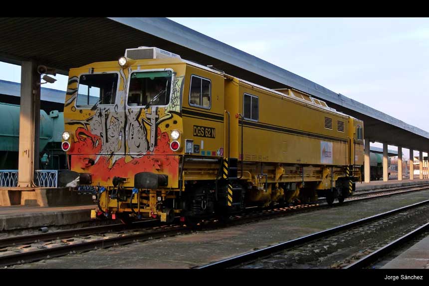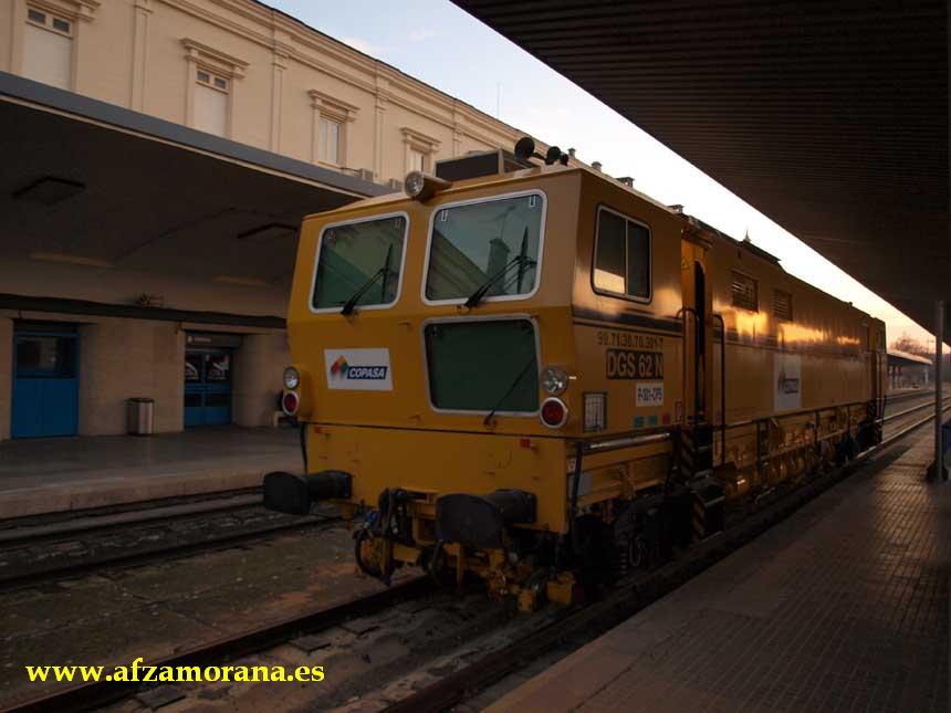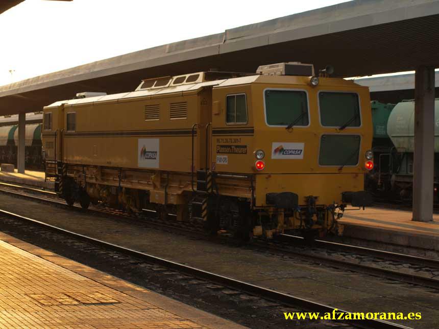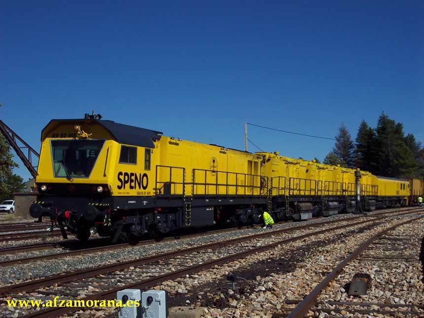 Procedente de Orense, circuló esta máquina de bateo continuo, efectuando cruce con el Talgo descendente en la Estación de Zamora. Fotos de Miguel Ángel Rodríguez.