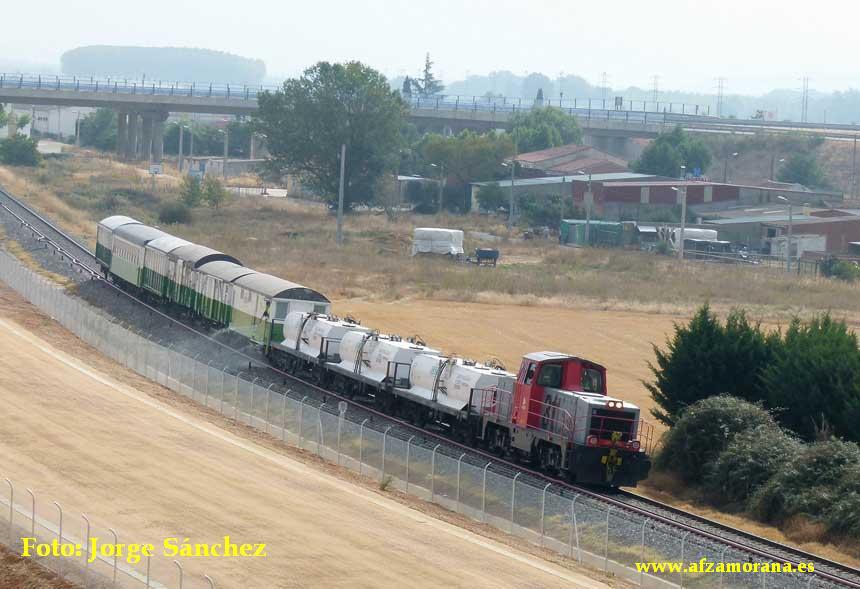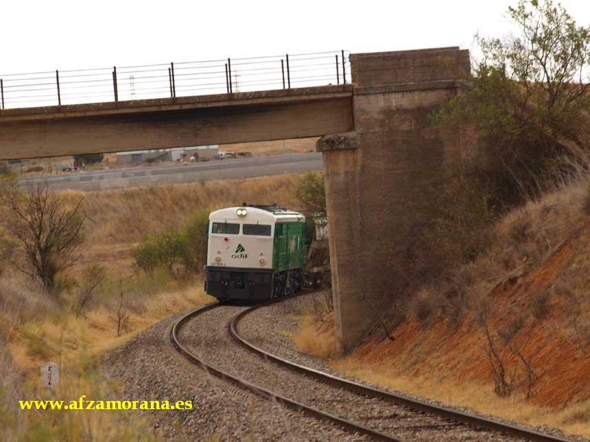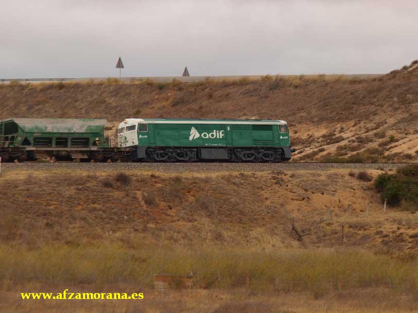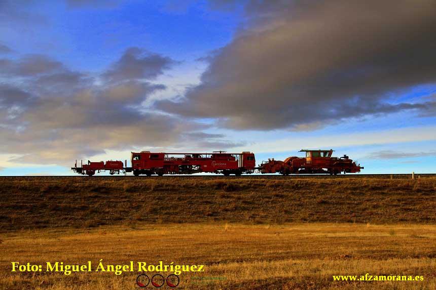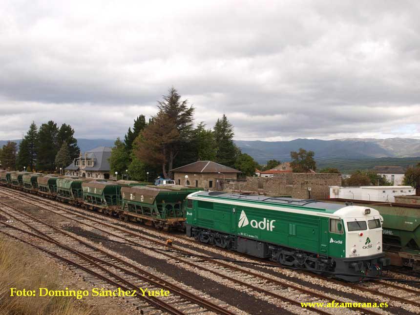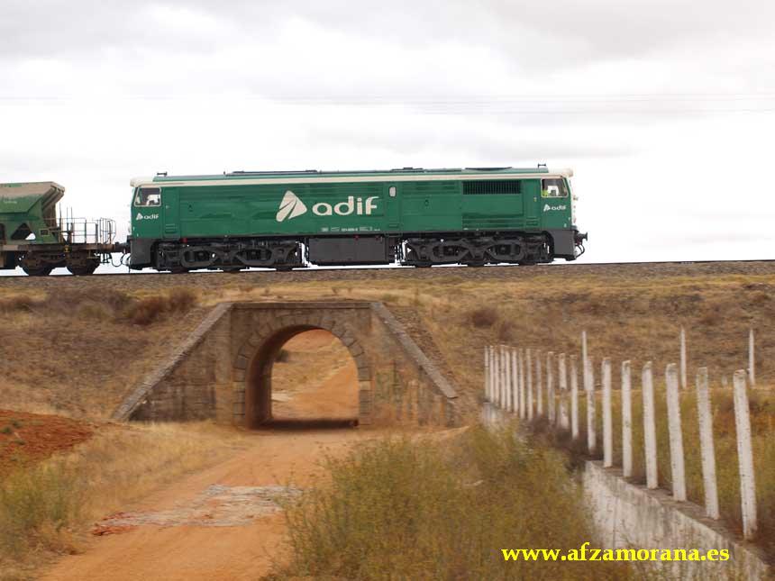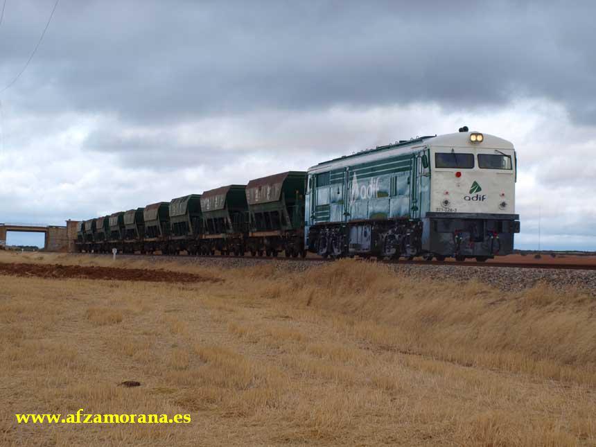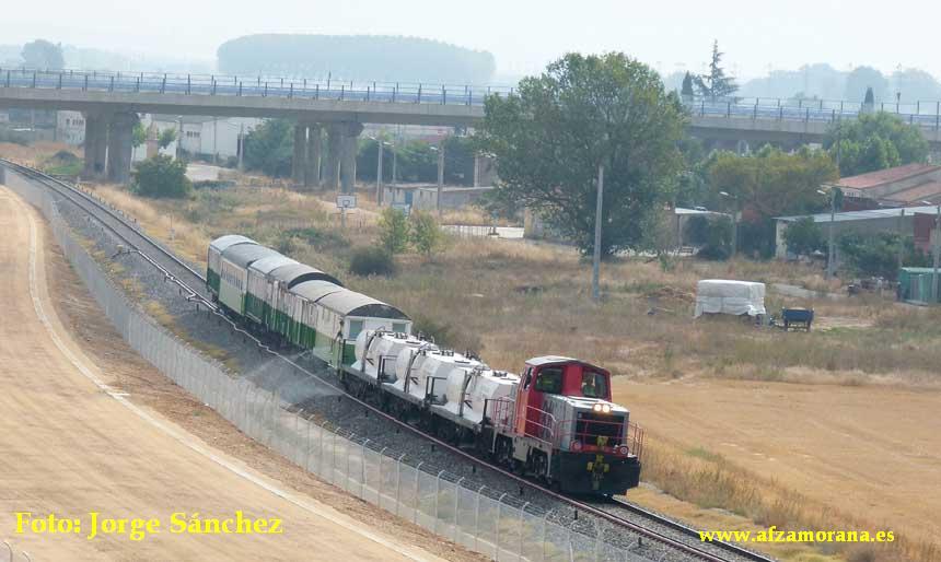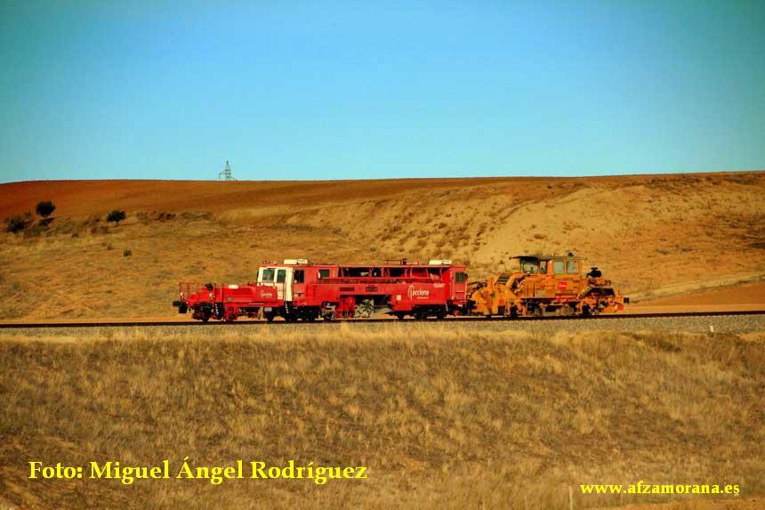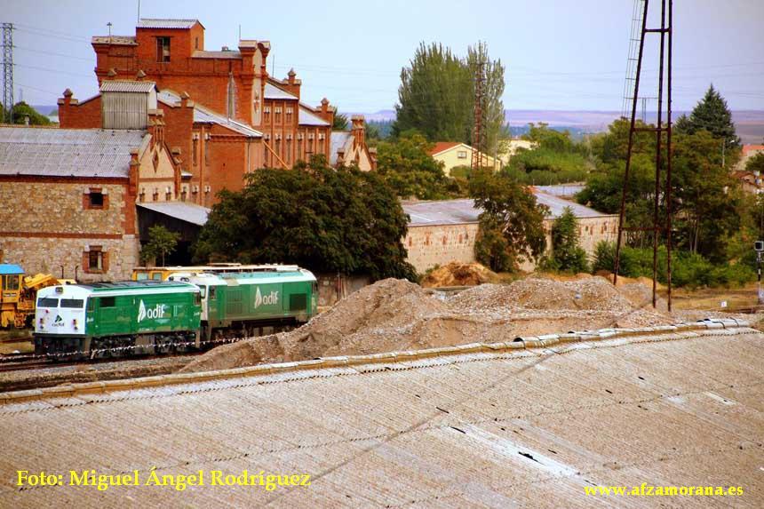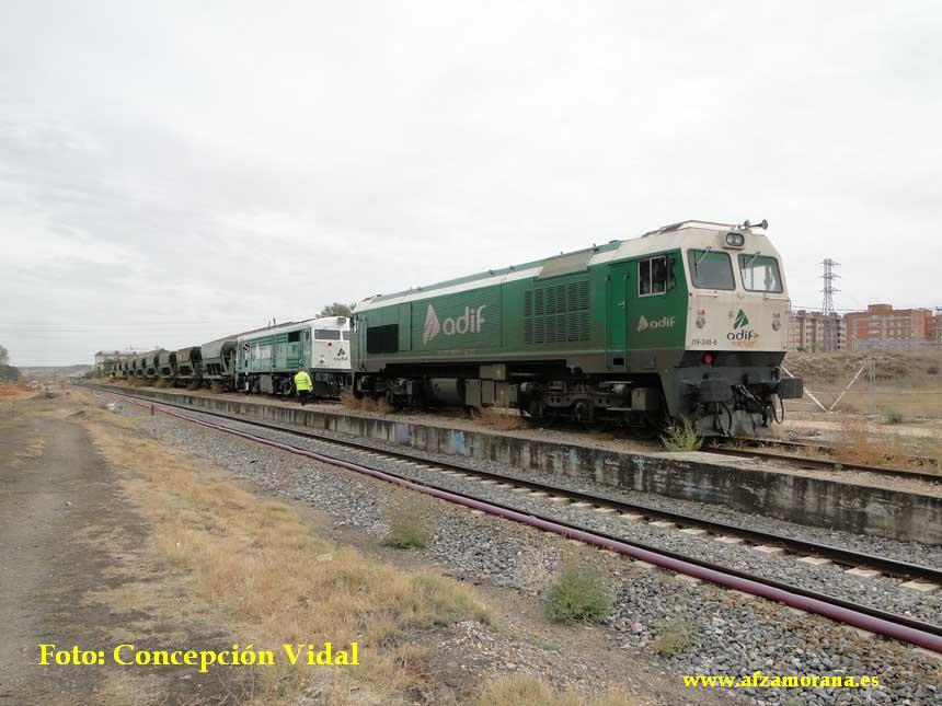 de ADIF. Lo hizo remolcando un tren de traviesas desde Toro, con destino