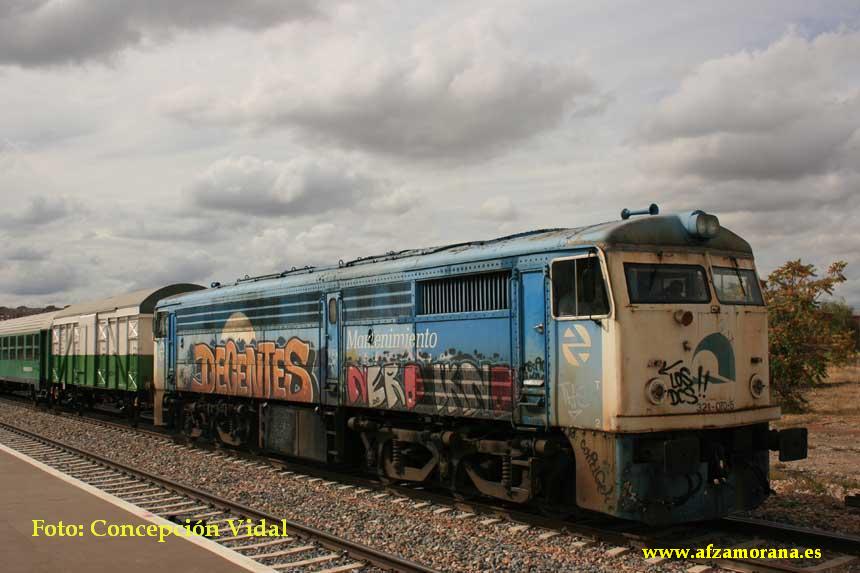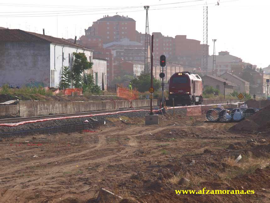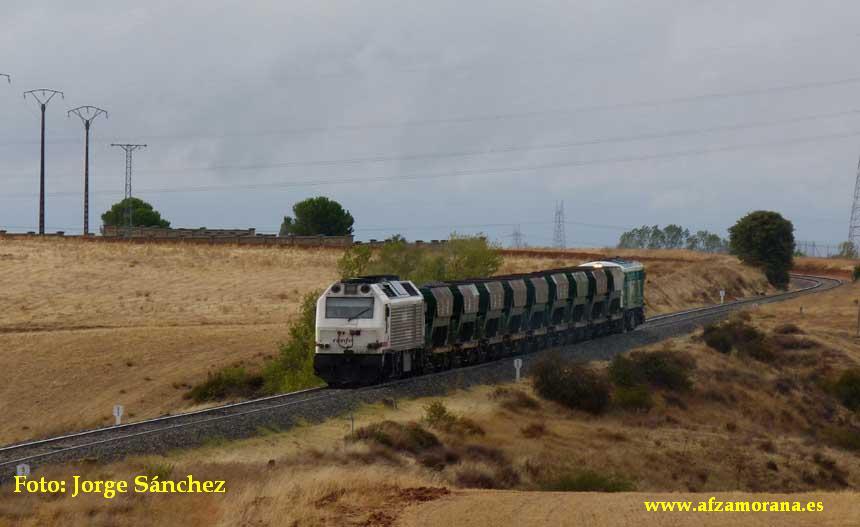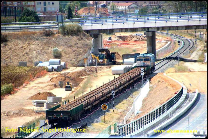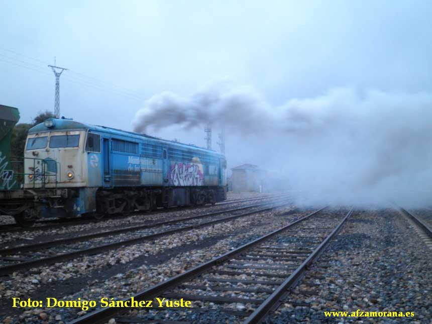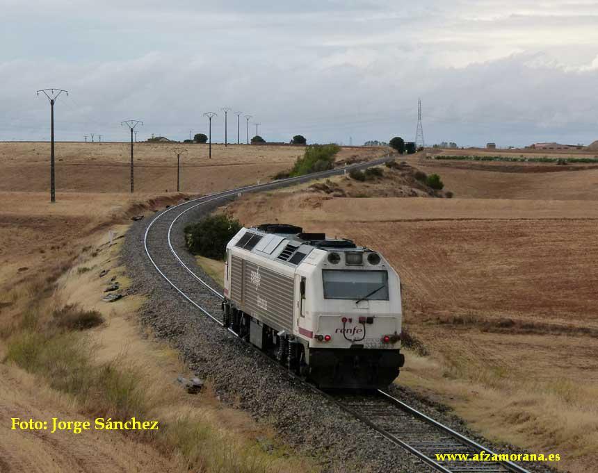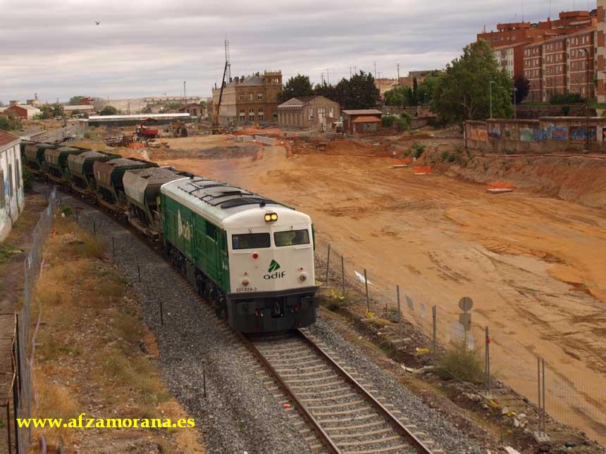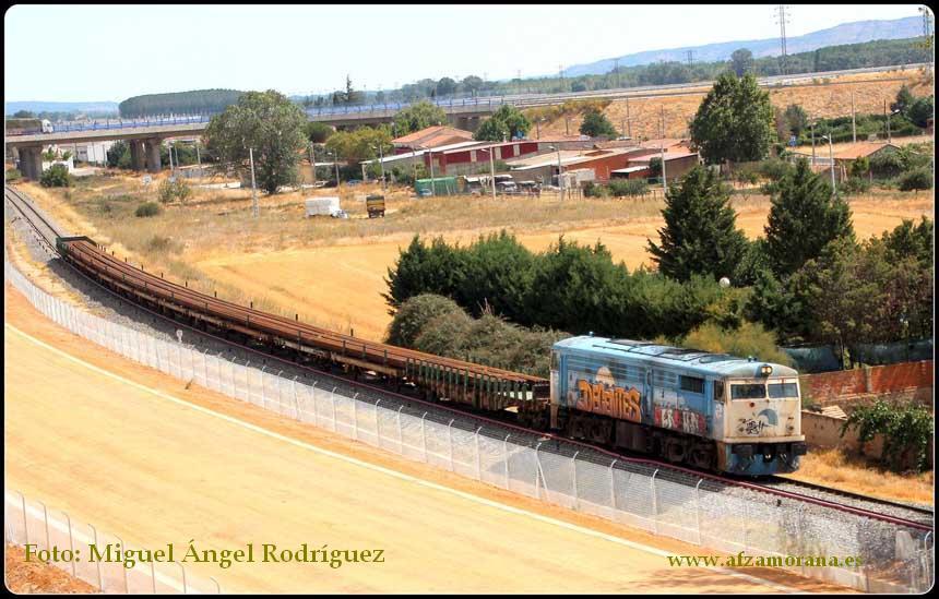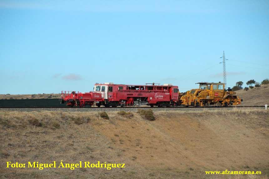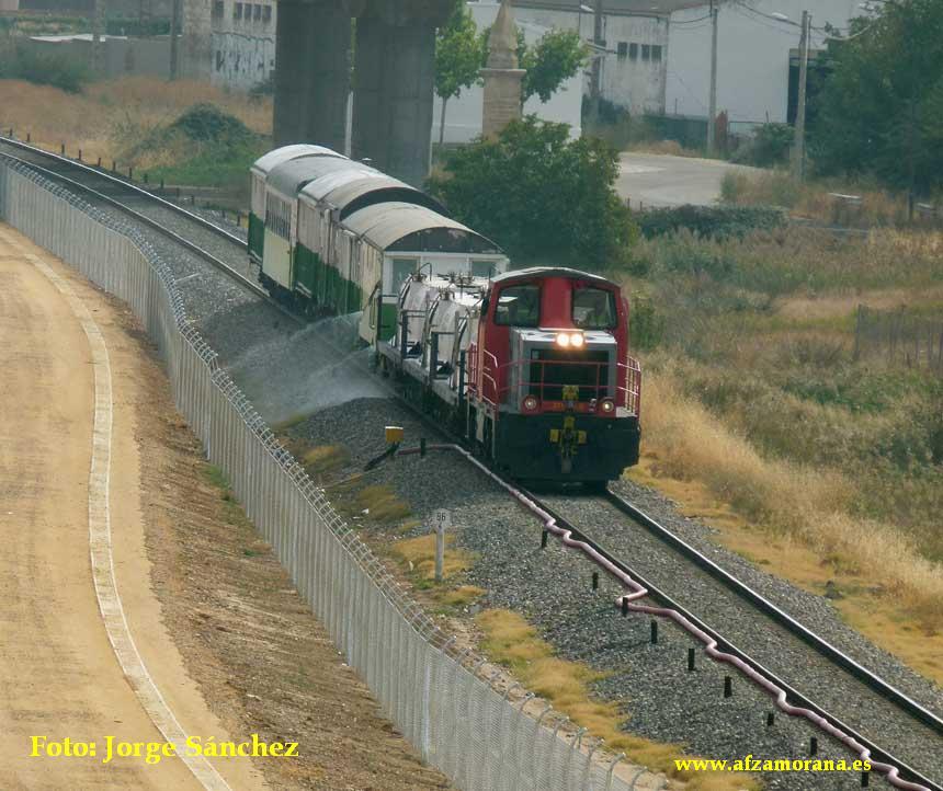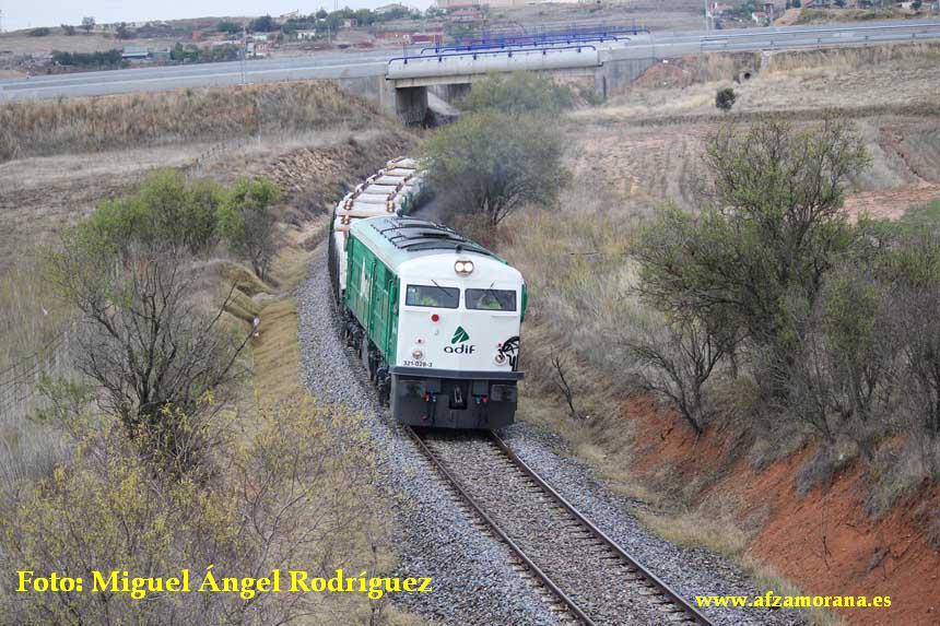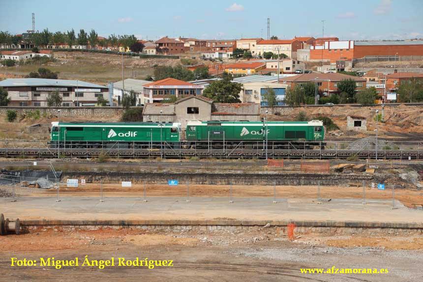 de ADIF. Lo hizo remolcando un tren de traviesas desde Toro, con destino