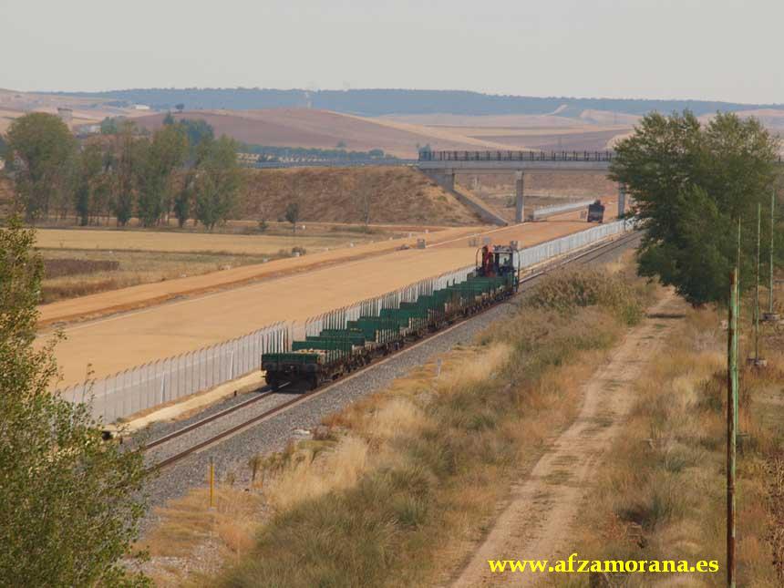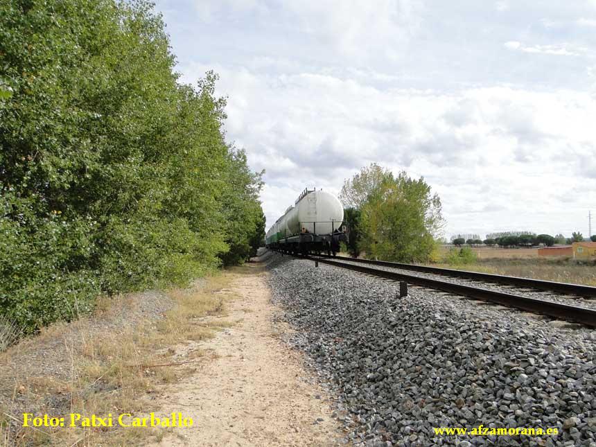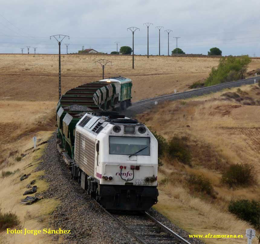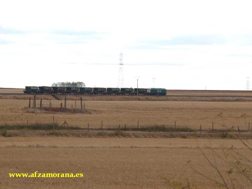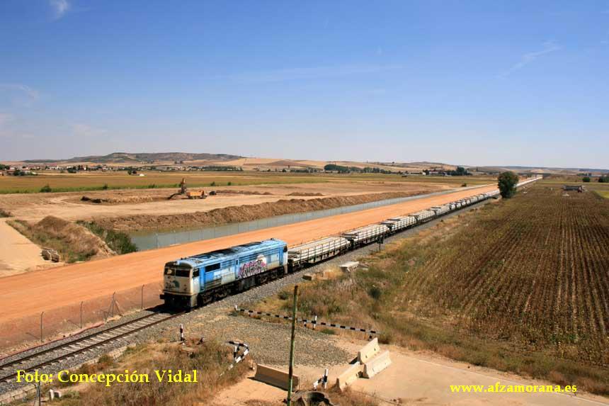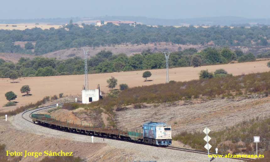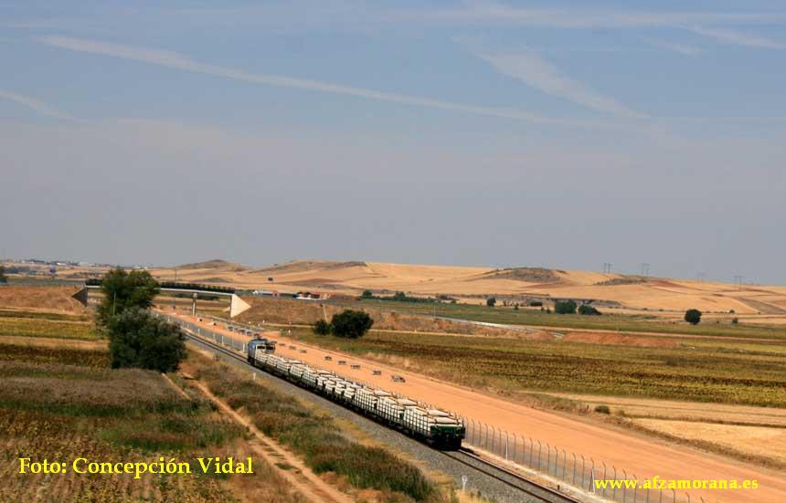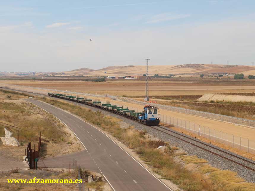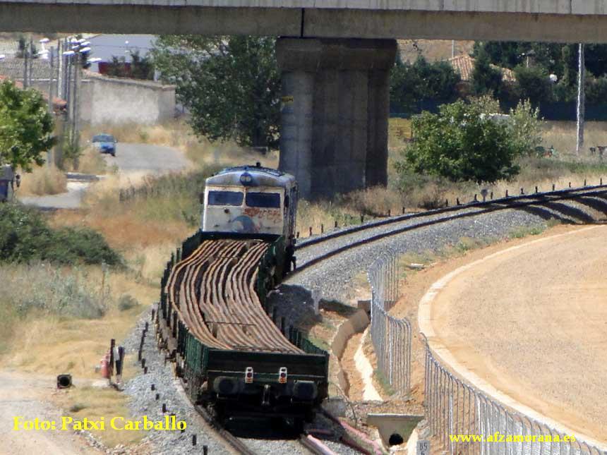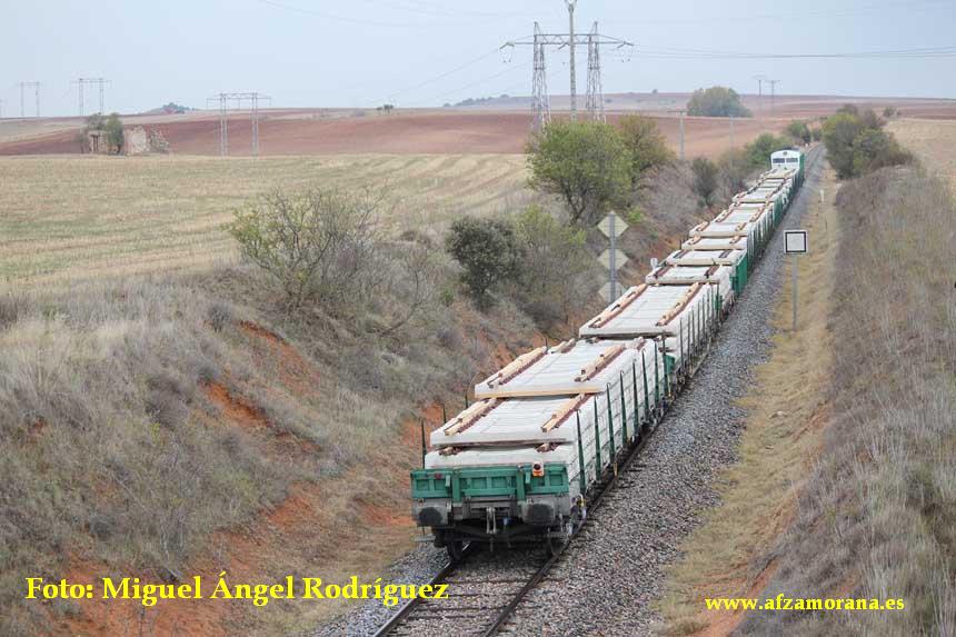 Hoy ha circulado un tren de plataformas con traviesas entre Toro y Sarracín de Aliste.