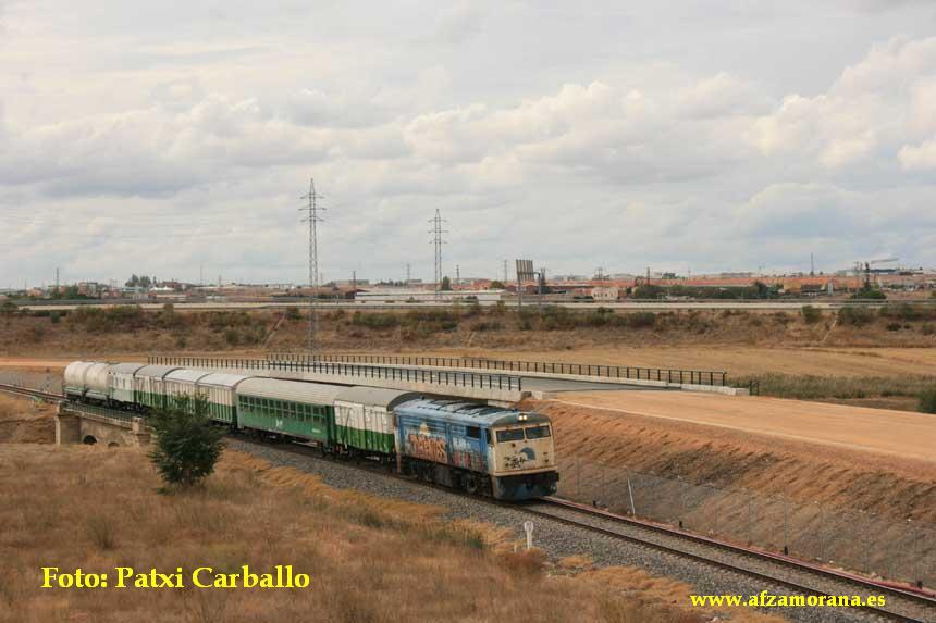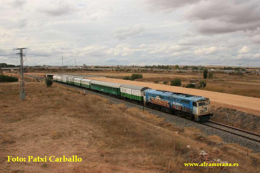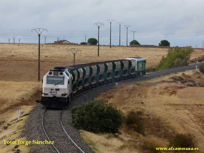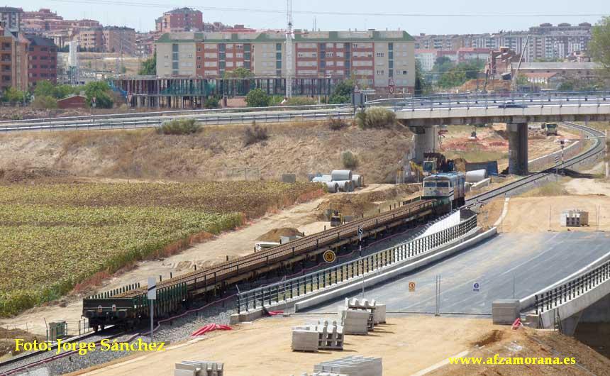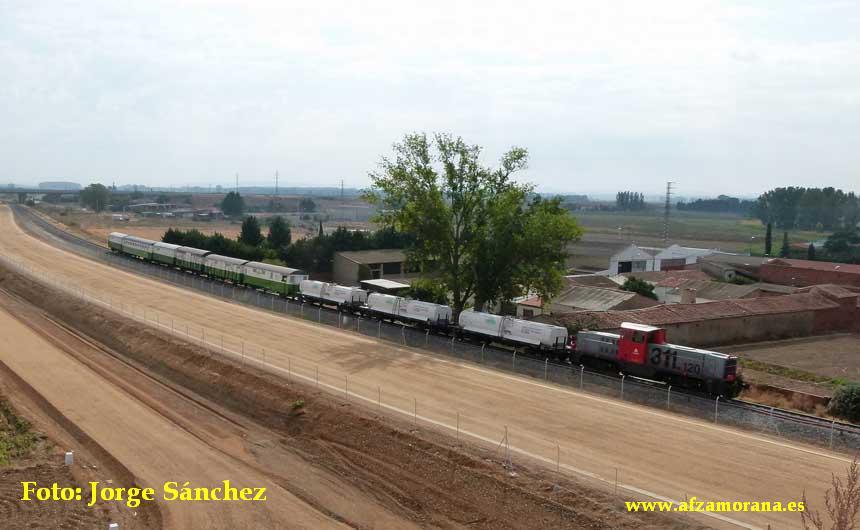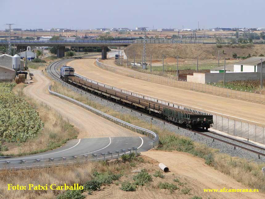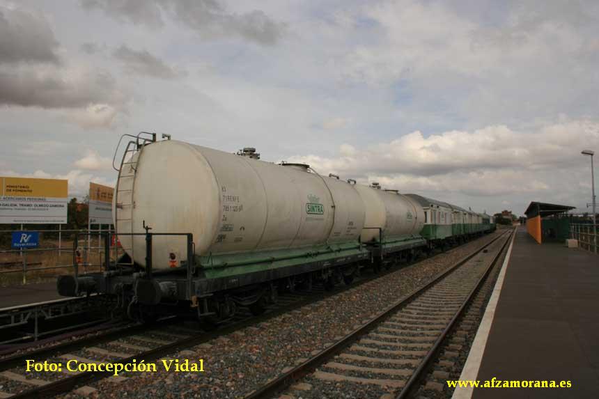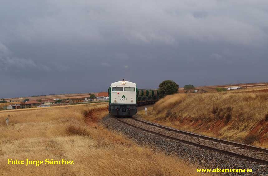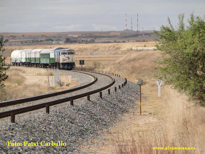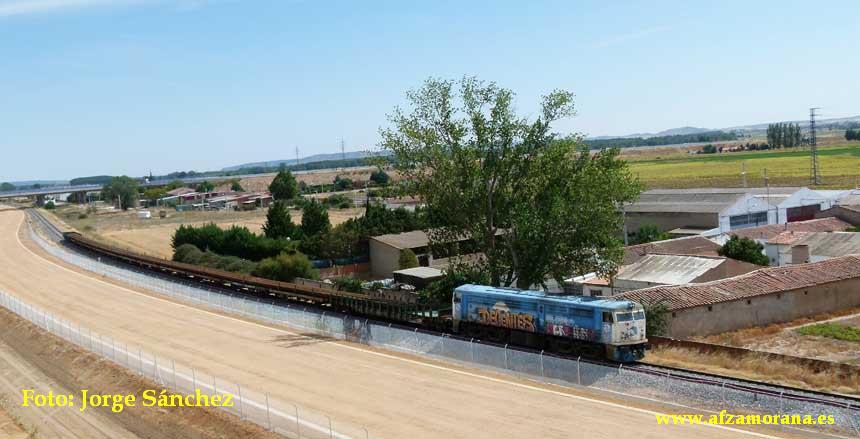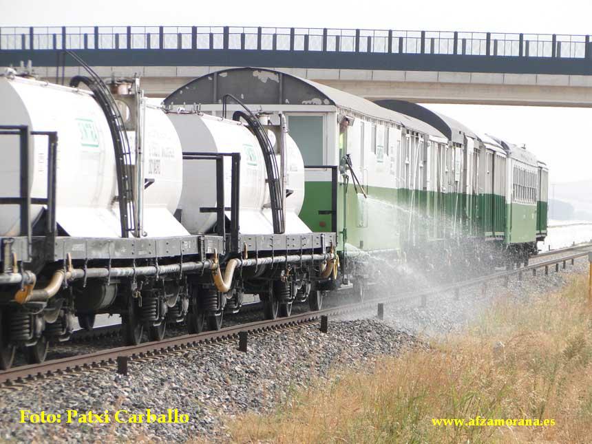 Hoy ha circulado un tren de plataformas con traviesas entre Toro y Sarracín de Aliste.