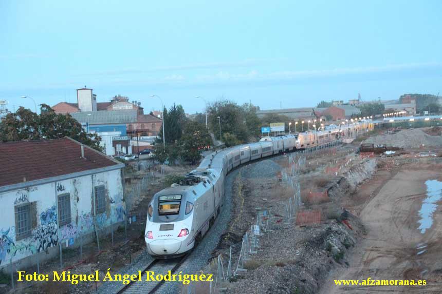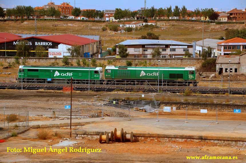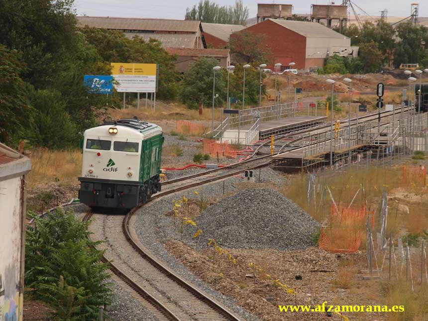 La Locomotora 321.028-3 ha permanecido apartada en la Estación de Zamora, en la derivación de la empresa de abonos. A última hora de la mañana llegó la Locomotora 319-340-6 (también con la decoración corporativa de ADIF) para remolcar a la Alco hasta los Talleres, en Madrid.
