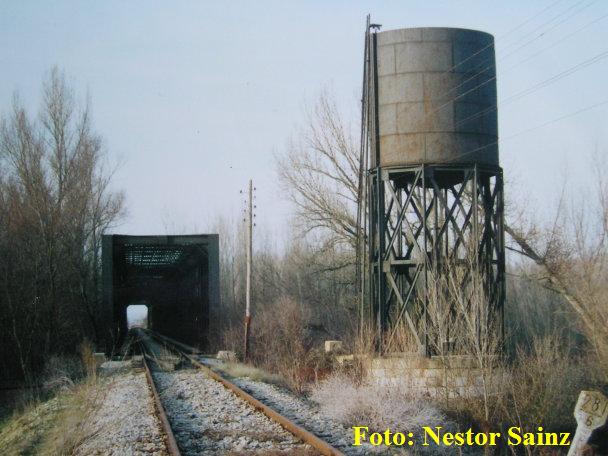 Locomotoras de vapor. Se conservan un depósito de agua a pocos metros del