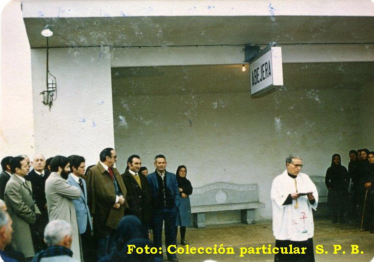 Inauguración del Apeadero en el año 1977. En presencia de autoridades y vecinos, se procede a la bendición de las nuevas instalaciones. Fotografía de S.P.B. |