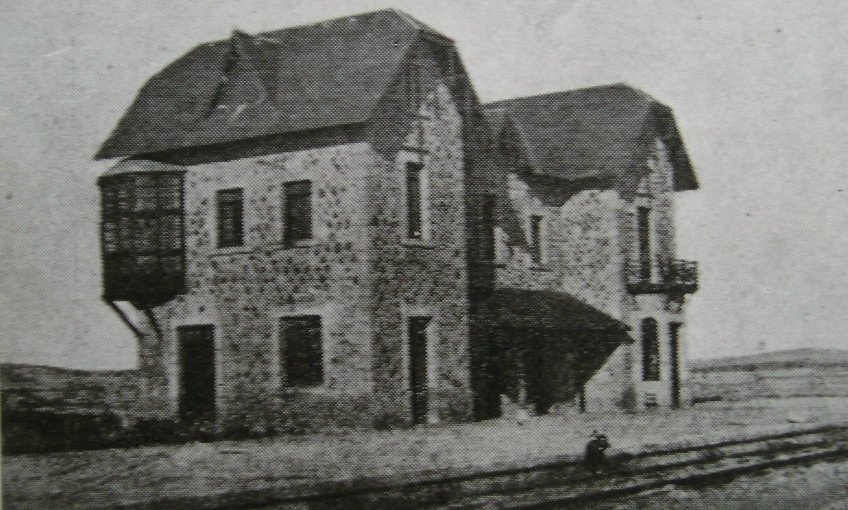 Edificio de viajeros de la estación en su estado original. Pinchando sobre la imagen, se puede hacer una visita virtual por el exterior.