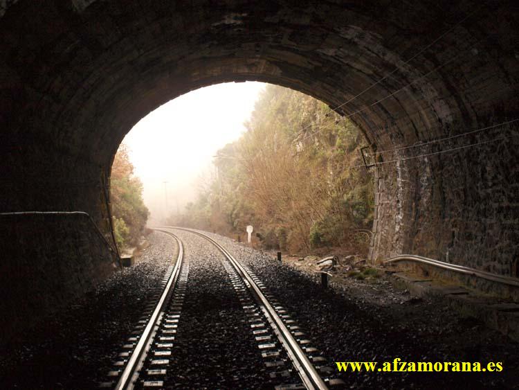 en curva y parte en recta. Es de sección tipo carpanel. El revestimiento de los hastiales es de mampostería, hormigón y gunita. El de la bóveda es de hormigón y