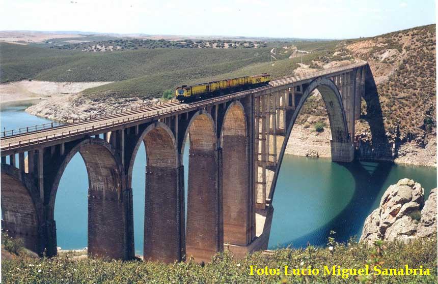 Tren de trabajos de Speno atravesando el Viaducto Martín Gil