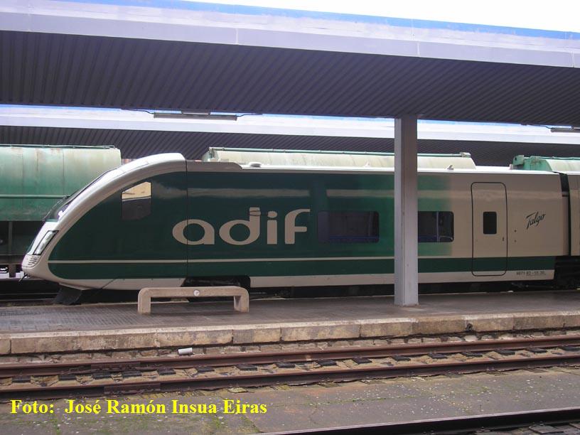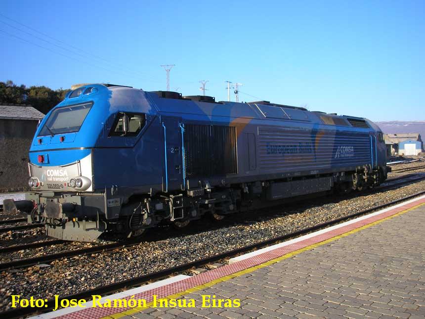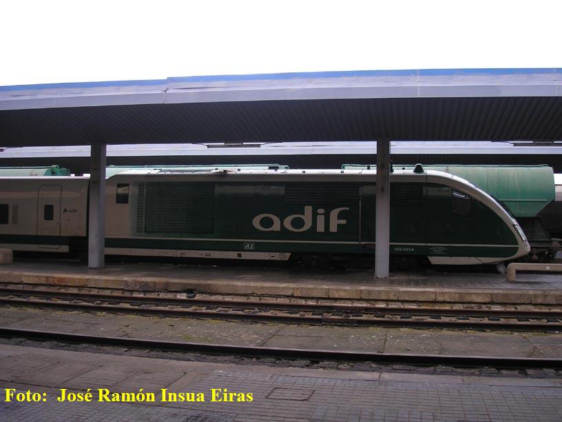 Locotractor perteneciente a la Jefatura de Orense, de paso en la Estación de Zamora. Recién pintado con la decoración corporativa de ADIF.