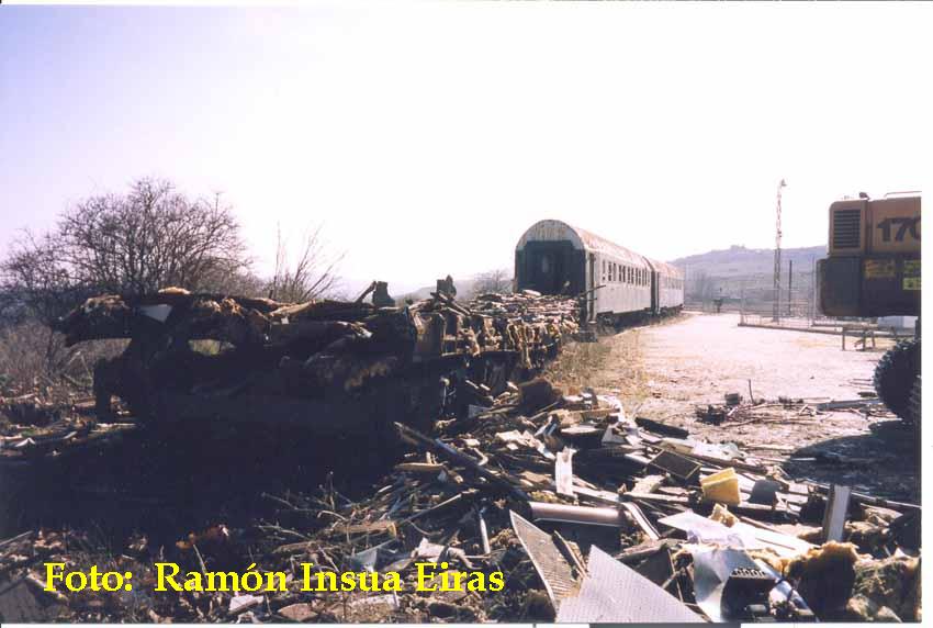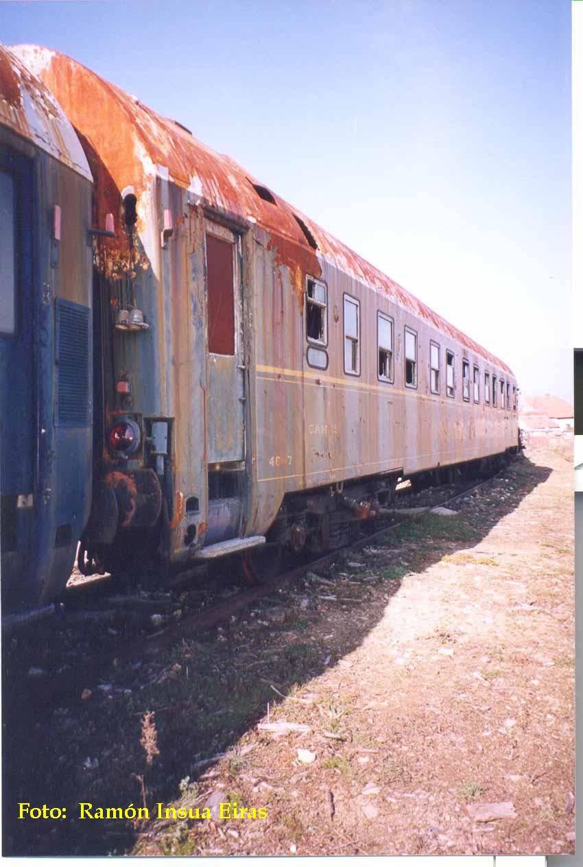 Fotografías tomadas en la Estación de Puebla de Sanabria, donde estuvieron durante algunos años apartados varios Coches-Cama, que como podemos ver, terminaron desguazándose.