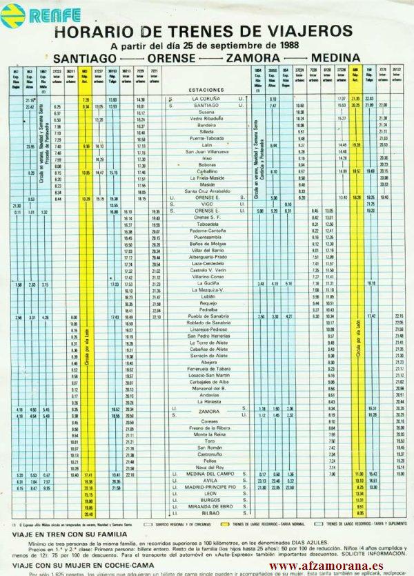 Horarios de trenes de Zamora del año 1970. Pertenece a la Guía de horarios de Renfe Nº 6, editada el 27 de Septiembre de 1970.
