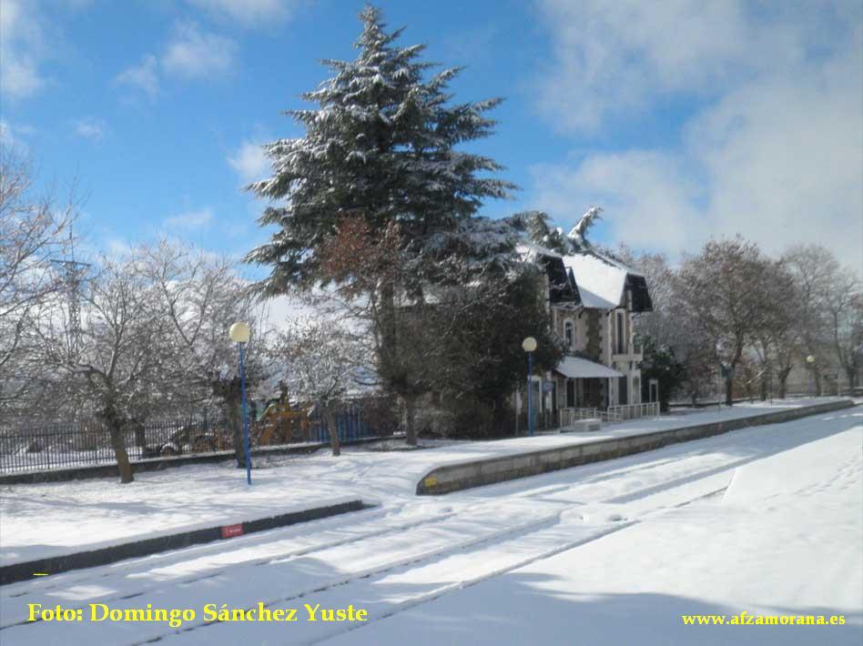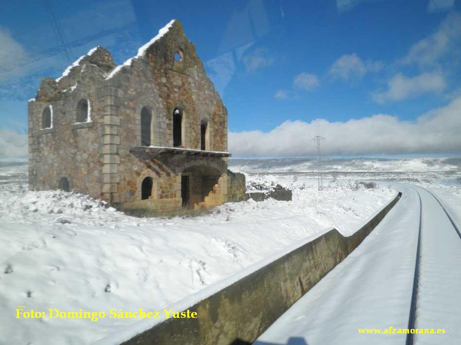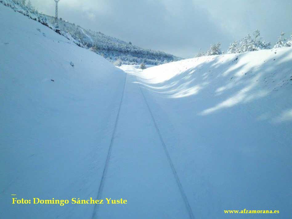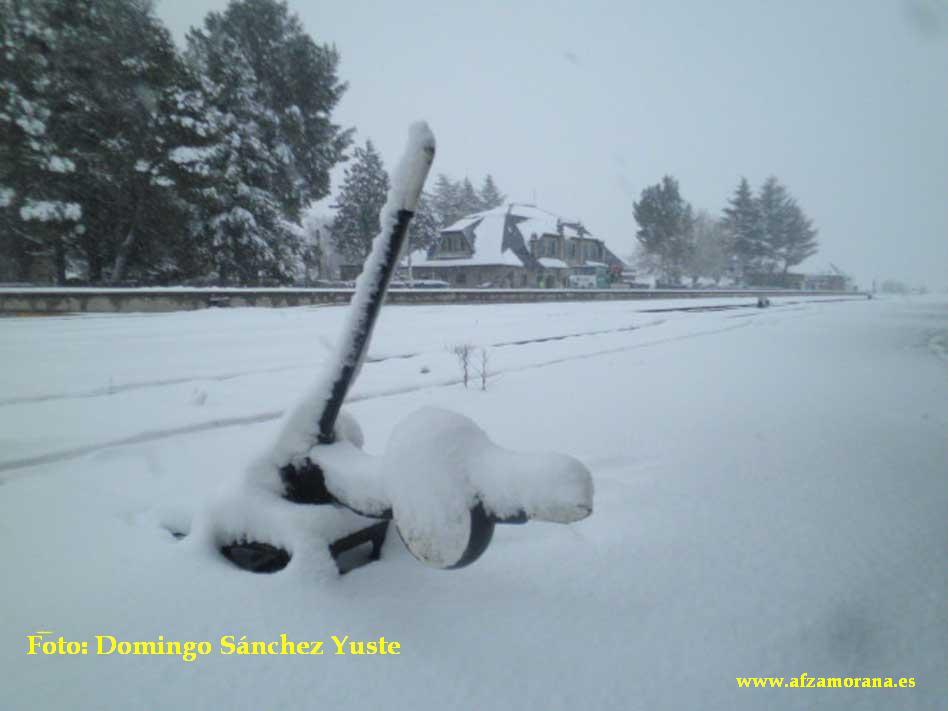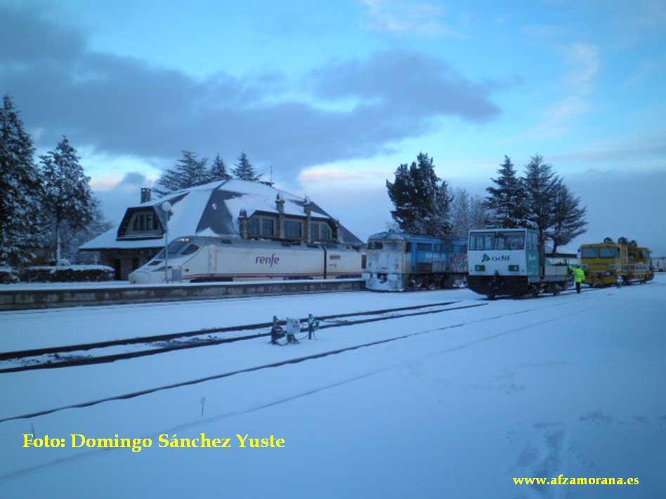 Imágenes de la línea Zamora-Puebla de Sanabria. Como consecuencia del temporal, la circulación de algunos trenes ha sufrido retrasos.