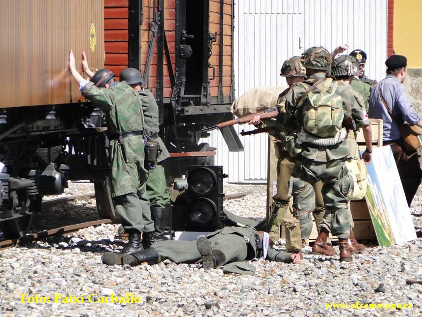 figurantes representaron el asalto a un tren alemán, ataviados convenientemente