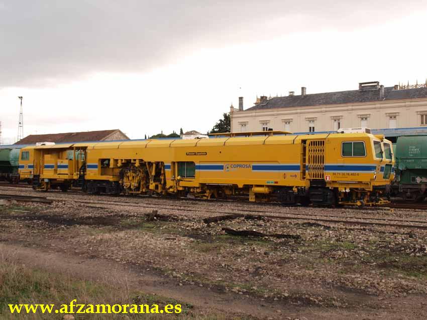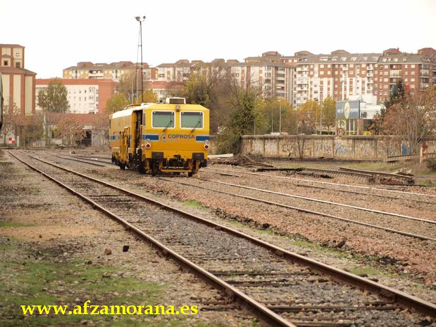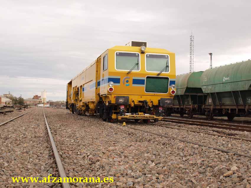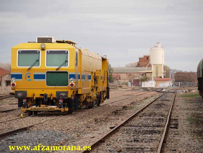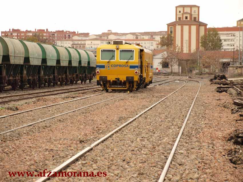 Estación de Zamora. Obras de renovación de vías 10 y 12. Durante unos días ha estado la Bateadora de Coprosa haciendo las últimas labores antes de la puesta en servicio de dichas vías.