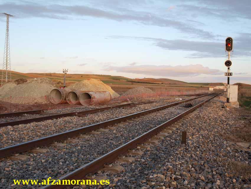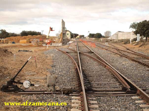 Estación de Monte la Reina. Se procede al levante de la vía de Apartadero por el lado Medina del Campo, desde la aguja 3, como consecuencia de las obras del Paso inferior que se está construyendo para la futura Línea de Alta Velocidad, para cruzar la Playa de vías de la Estación de Monte la Reina.