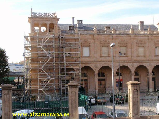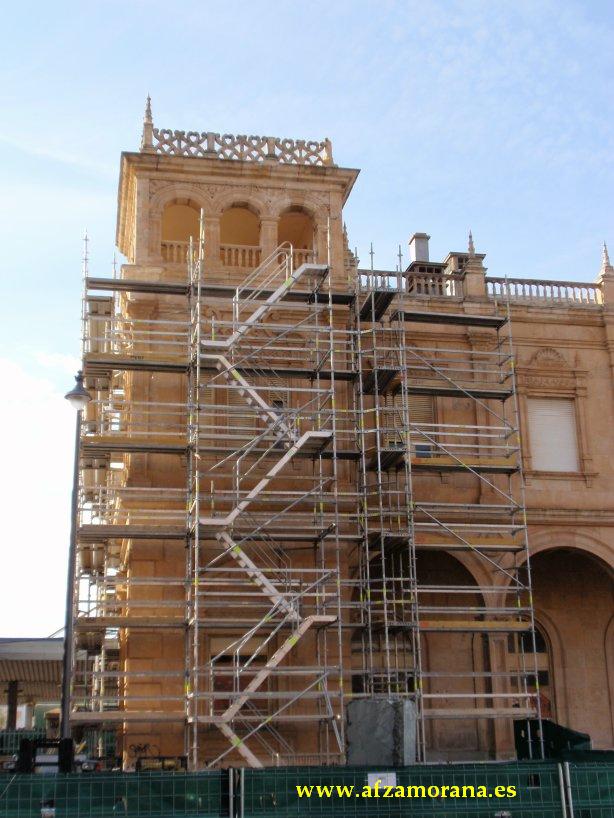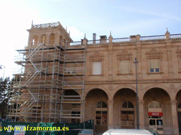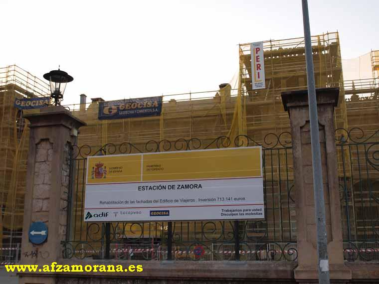 Después de varios años de deterioro de la fachada de la Estación de Zamora, se ha aprobado un presupuesto para su restauración. El día 27 de Abril dio comienzo el montaje de los andamios en la fachada de la población, en el Torreón lado Orense/Salamanca.