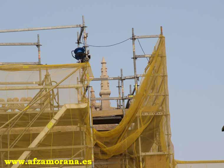 Continúan las obras en la Estación a ritmo constante, habiéndose preparado el montaje de los andamios en el Torreón del lado Astorga/Medina.