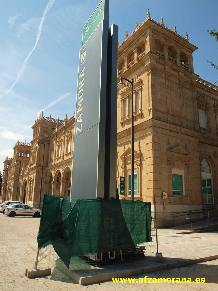 Estación de Zamora. Cambio de ubicación del cartel de la entrada.