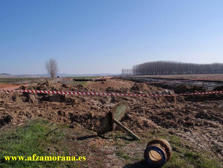 Septiembre 2009. En la explanación y junto al Paso Inferior en la zona de Fresno de la Ribera, se ha acotado una zona donde han aparecido restos arqueológicos.