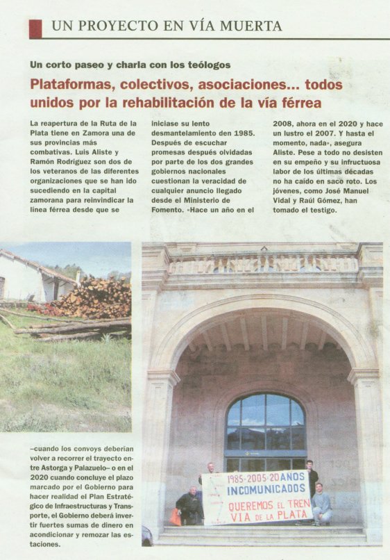 El colectivo considera que la reapertura del tren Vía de la Plata crearía tejido industrial para la región y que revitalizaría las provincias del oeste de la Comunidad autónoma. “Creemos que es viable pero dependemos del Gobierno, que está haciendo el estudio de viabilidad, pero estamos convencidos de que lo es. Los dos partidos mayoritarios están a favor de ello pero es necesario obtener un compromiso real y efectivo”, comentó Mateo del Amo.