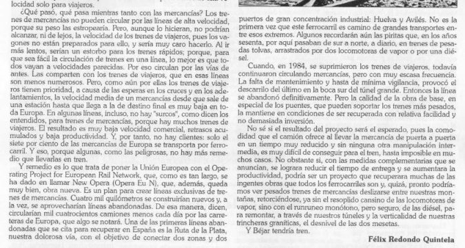 Los representantes de la plataforma aseguran que la reapertura de esta vía férrea reportaría numerosos beneficios, entre ellos, el ahorro de tiempo en el transporte de mercancías entre el norte y el sur. También ahorro energético, ya que “está comprobado que el tren gasta entre un ocho y un diez por ciento del combustible total que se consume en el planeta, así que supondría un beneficio ecológico importante, porque la mayor parte del consumo corresponde al transporte por carretera”, según indicó Del Amo.