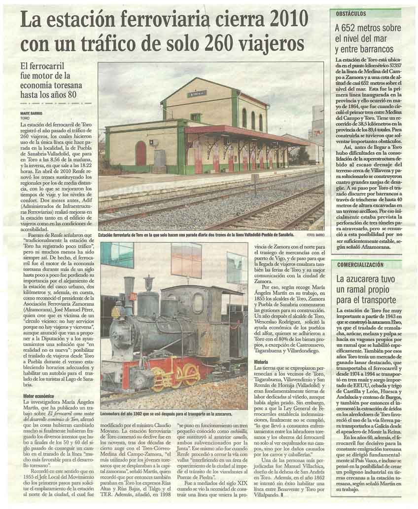 * Otras Noticias de Prensa sobre el Ferrocarril en Zamora. Año 2010