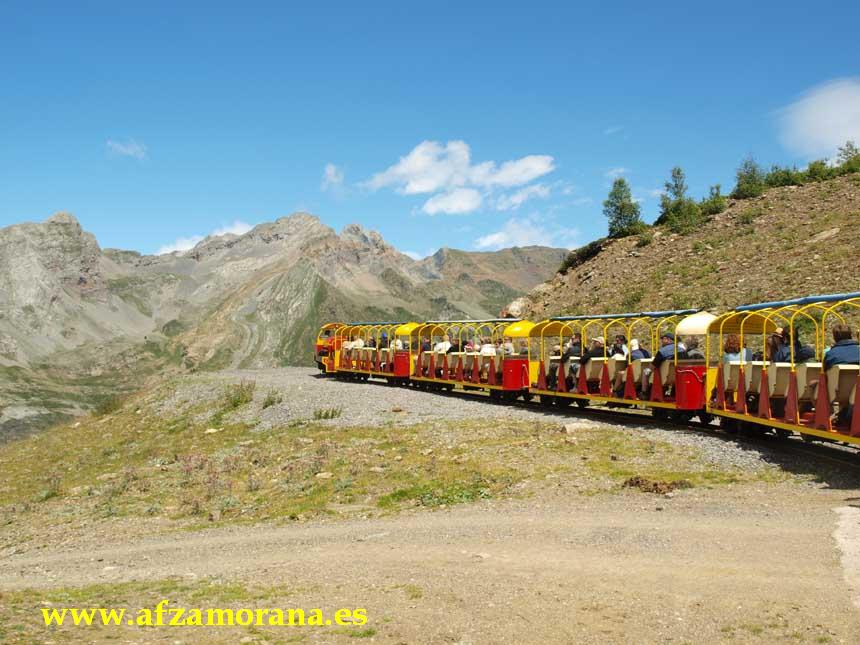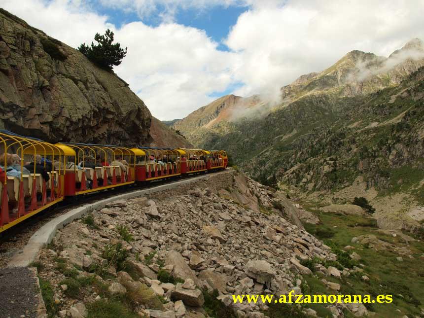 tren turístico que circula por un paisaje espectacular en pleno Pirineo. La