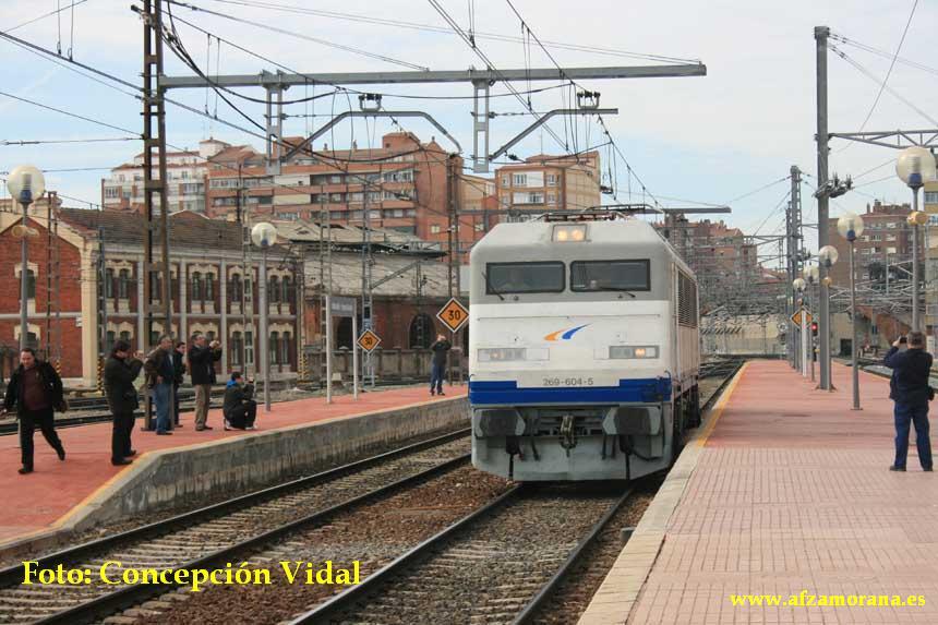 Con motivo del viaje organizado por la Asociación de Amigos del Ferrocarril de Madrid con el tren especial remolcado por la 269-604-5, (la "Gato montés") viajamos a Valladolid para pasar una interesante jornada fotografiando trenes. En la composición venía el recientemente restaurado furgón de Correos pintado en colores Estrella